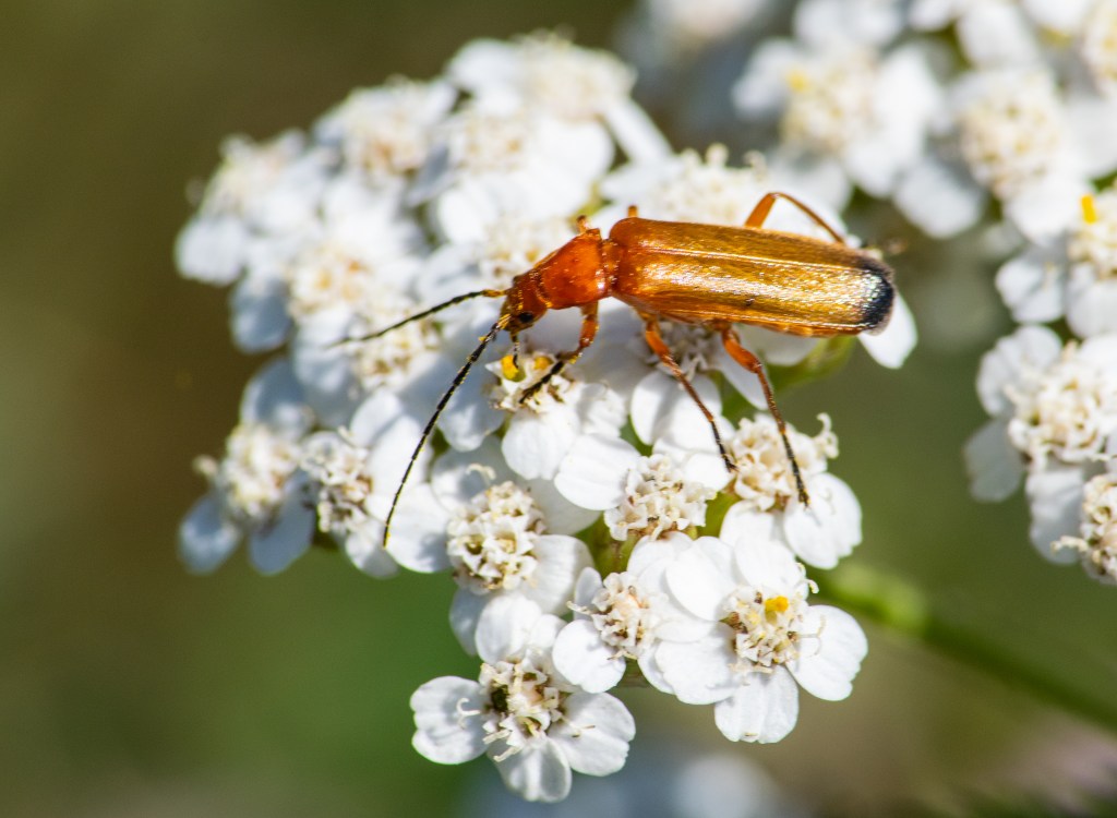 That’s where I met my beetle, hard at work on the flowers. I think it may be a cardinal beetle- no airs and graces, no complaint about a lowly Baptist taking the photo!