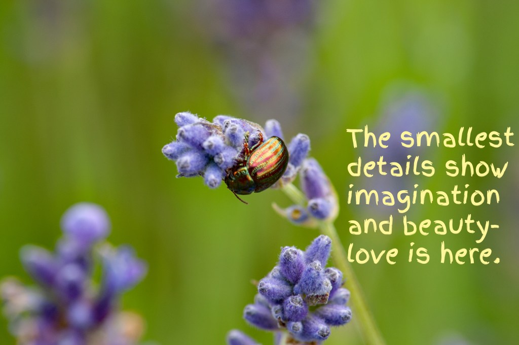 Do you like the photo? I thought it going to be a ladybird on the lavender: using a macro lens to get close-up revealed an unexpected beauty. It is a Rosemary Beetle- with stunning colour and patterns on its carapace.