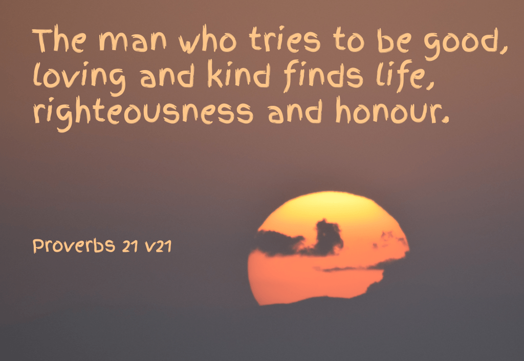 Proverbs 21 v21 says “A man who tries to be good, loving and kind finds life, righteousness and honour.”