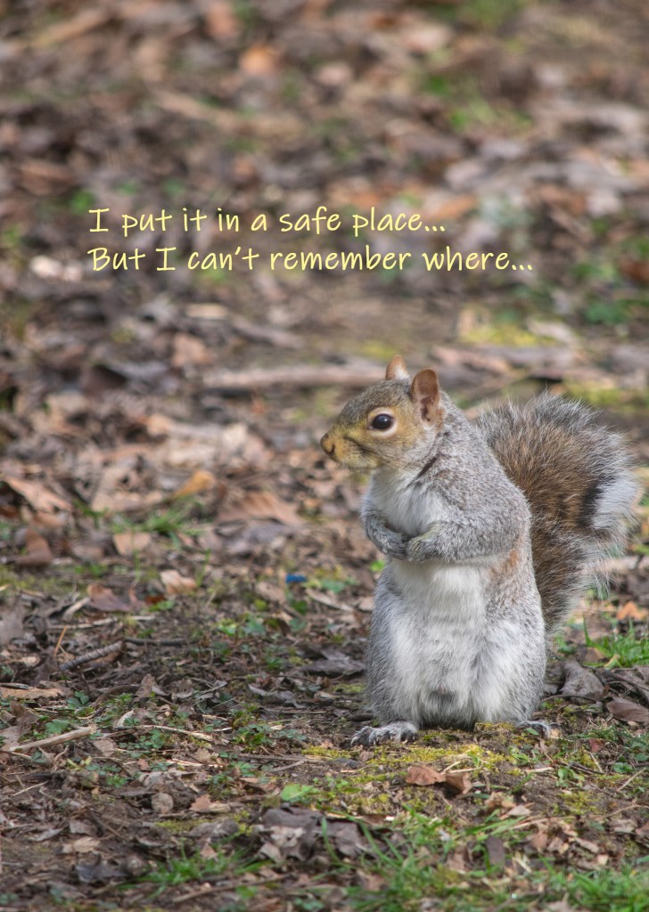 I’ve developed my forgettory-cum-losing-ability to a high level. “It was in my hand a minute ago!!!” is a wail frequently heard Chez Nous. Combs, keys, USB stick, pen, phone, letter from the doctor, wallet (!)… Almost anything can and does go missing and I am left looking like this squirrel. It’s SO frustrating!