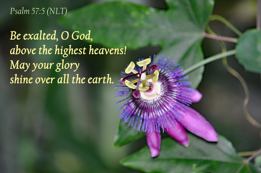 Or if that doesn’t draw you, just examine the picture. Such an amazing flower… it surely suggests that such complexity requires an amazingly competent designer and Creator. Then the passion flower becomes a wonder- and the best response is to praise and worship the One who caused such functional beauty to exist. Psalm 57 v5 is then a logical vehicle of praise, humbling ourselves and glorifying God Almighty.