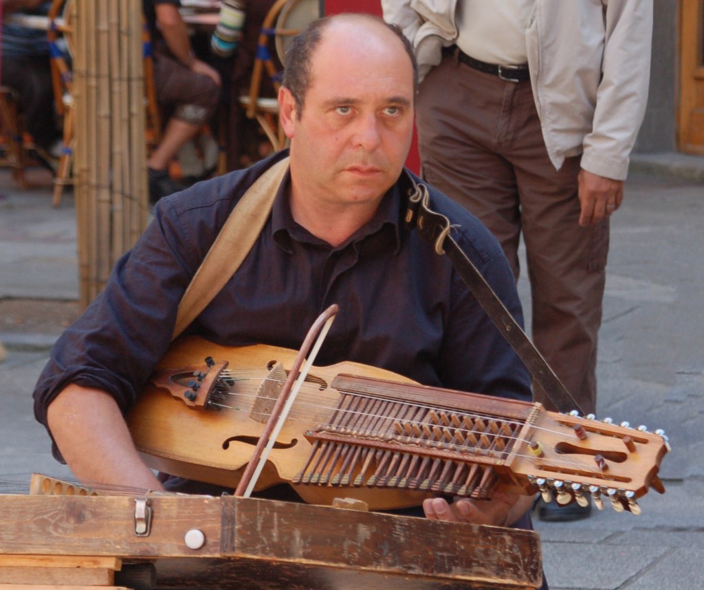 Listening to this man, a street musician earning a few francs as he played this “key fiddle” was intriguing. 16 strings, and a bow. What??? A nightmare crossbreed between a rebec and a hurdy-gurdy? Whatever next!