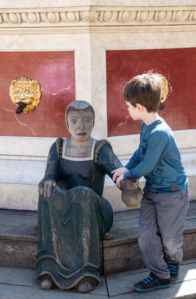 My photo was taken at Hampton Court, where a great effort has been made to “bring history alive” for the visitor. You can “help” roasting meat on a spit in front of a roaring fire. Watch as people in historically accurate clothing do what the servants used to do. And you can pass the time of day with wooden dummies in the courtyard.