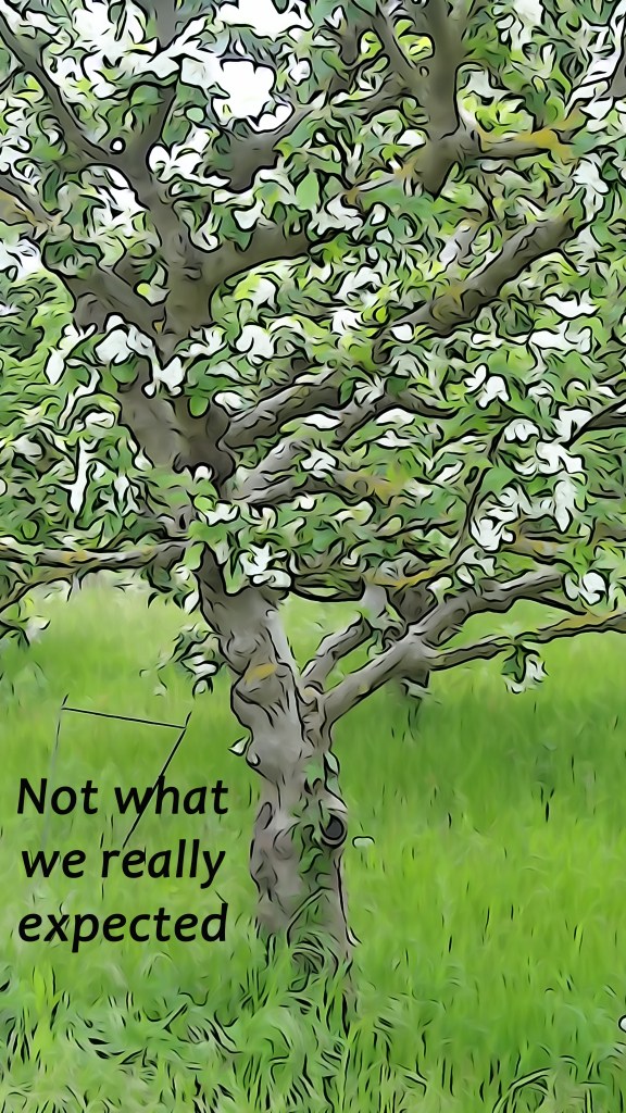 It’s a disaster! My tree photograph was part of a plan, a set of pictures extolling the beautiful orchard at Canons Ashby. This is what I brought home- definitely NOT what I expected. My camera went wrong… all its clever little innards crossed their wires and it only took photos in a Van Gogh mode. No warning, just a “fait accompli” by electrical gremlins. The camera is dead on its perch, kaput, and REPLACED.