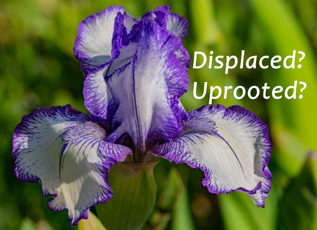 It’s funny that it took an interruption and inconvenience to stir me into thought and action. Displacing an iris may be responsible for making me taking the larger tragedies seriously, being motivated to be part of the salvation/rescue that God is always engaged with.