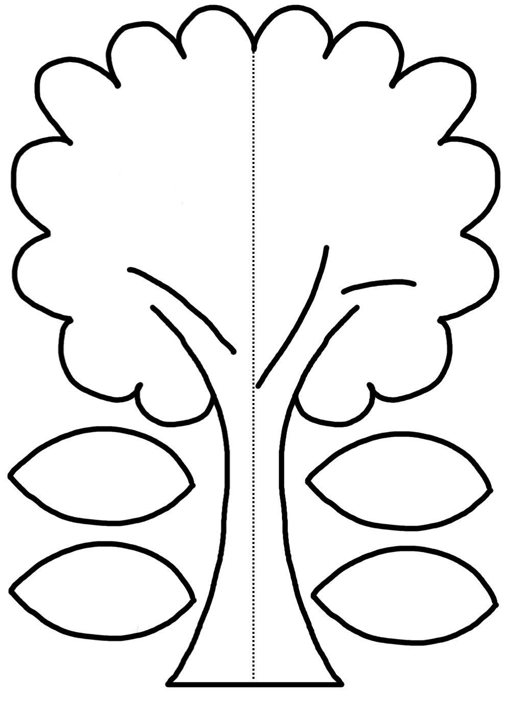 - Colour the trunks brown and fold the trees in half along the dotted line.