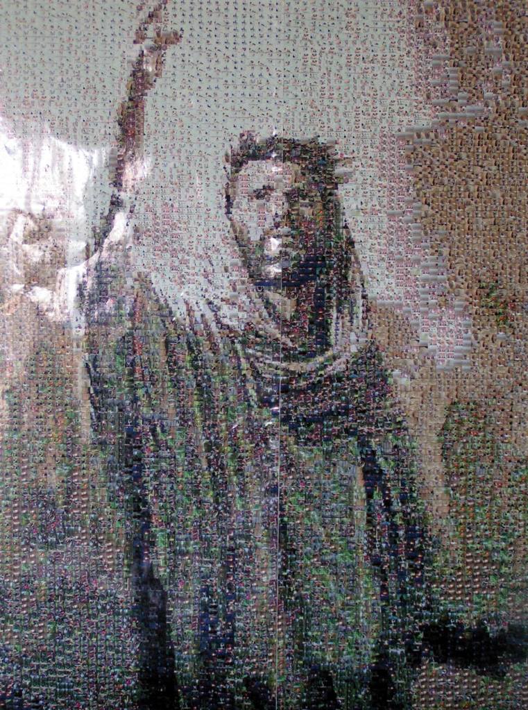 This is a photograph of the members of a church. Every person provided a small photo of themselves, and the artist combined them to form a composite “impression” of Jesus Christ. Obviously, we don’t know what Jesus looked like in the flesh! But as a symbol, it works well for that congregation.