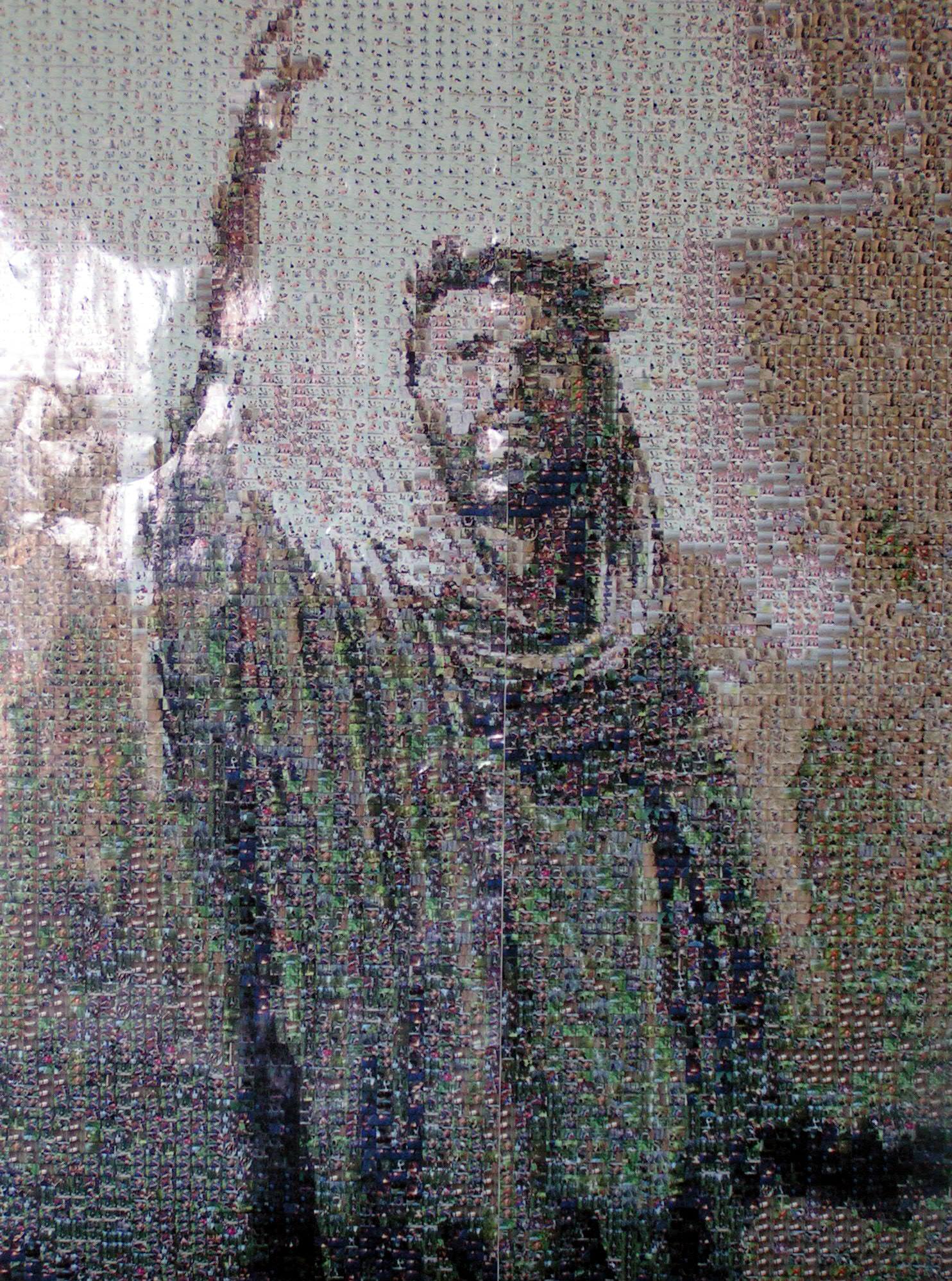 This is a photograph of the members of a church. Every person provided a small photo of themselves, and the artist combined them to form a composite “impression” of Jesus Christ. Obviously, we don’t know what Jesus looked like in the flesh! But as a symbol, it works well for that congregation.