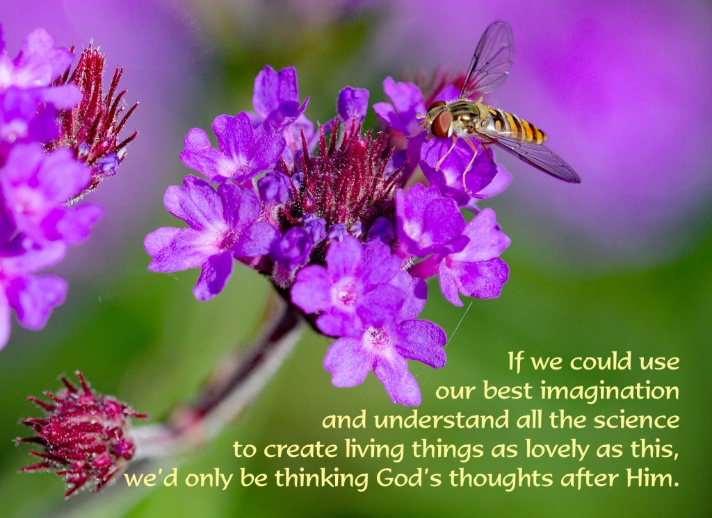 For myself, the experience of hoverflies and flowers causes me to wonder and pause in thought. So does great music, amazing art, astounding science, and intriguing thought. Perhaps the psalmist knew something profound. May the thoughts of my mind seek out the thoughts of my Maker.