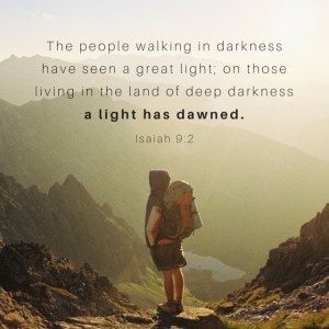 The people walking in darkness have seen a great light – lovely. Makes a great poster, doesn’t it? Those lovely light beams shining down on lovely people who walk in the lovely light. Lovely.