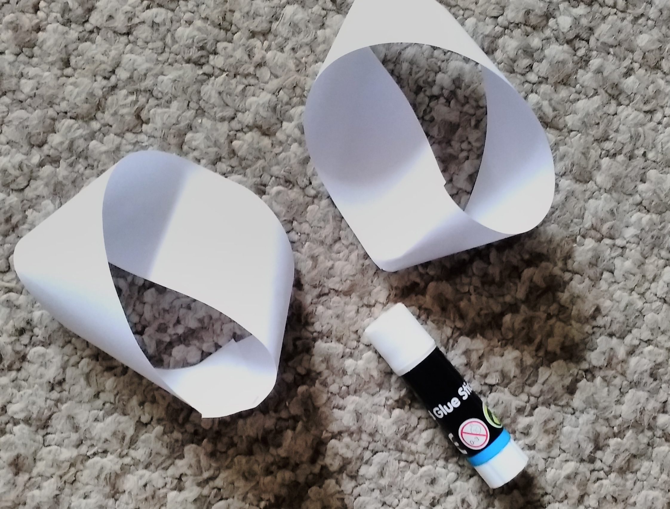 Make the other two strips into Mobius strips but MAKE SURE THEY GET TWISTED OPPOSITE WAYS! This is very important. Have a look at the video below if you are not sure. One must be twisted to the right and one to the left.- Glue them together in a cross shape. Again, refer to the video if you are not sure.