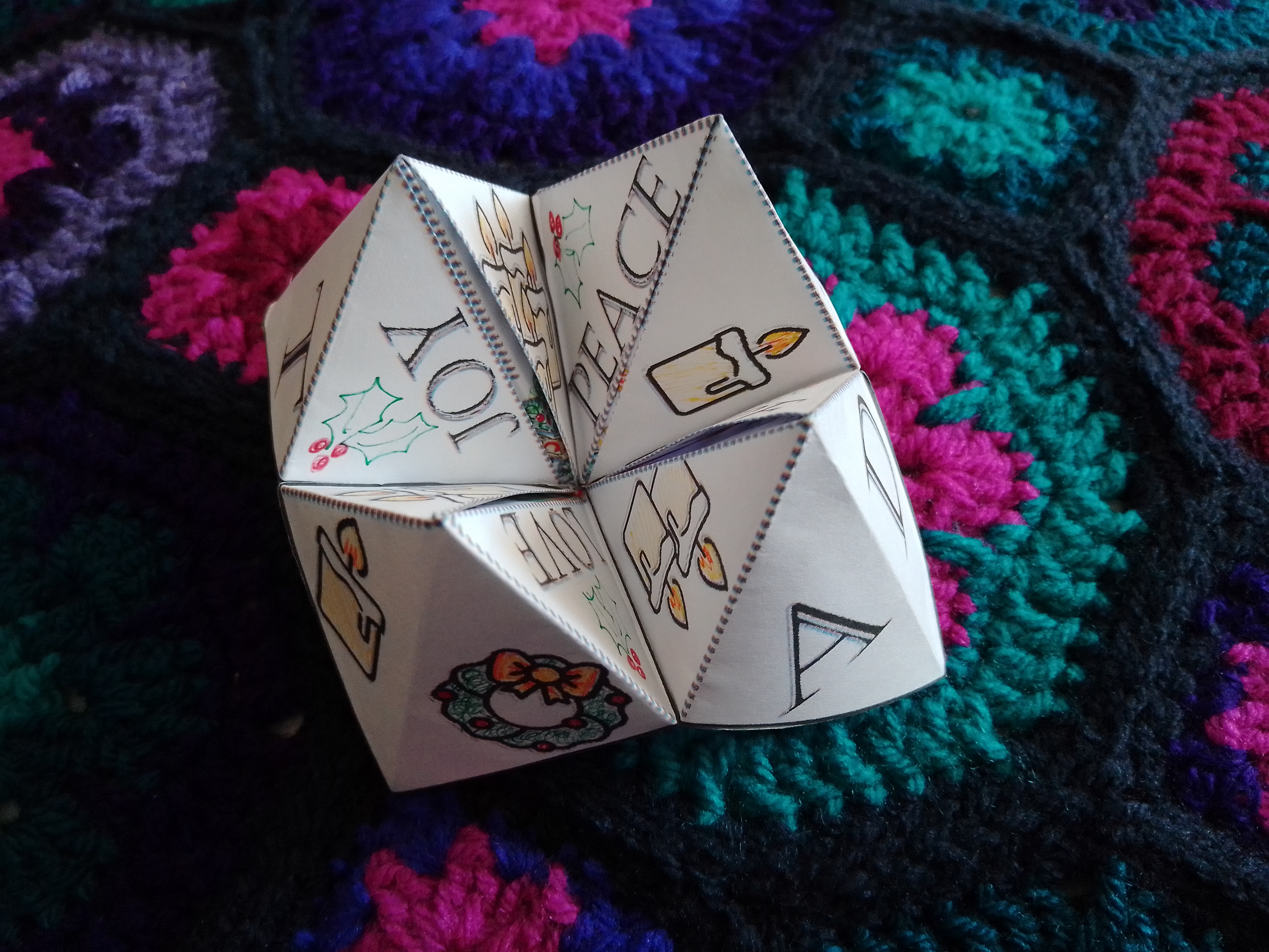 But now there is more! Yes, you heard that right – another printable, foldable, colourable Advent yummy. This time it is based on the ever-popular fortune-teller / cootie catcher. I present to you the Flip-Flap Advent Story Teller.