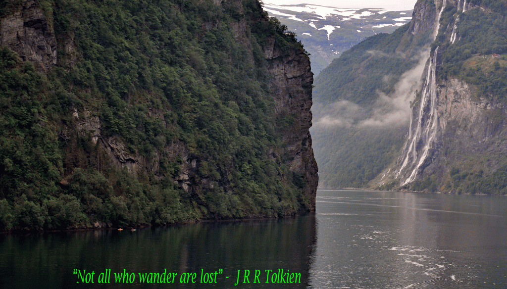 Here in the fjords of Norway, I’m pulled towards the epic adventure saga of “The Lord of the Rings” by JRR Tolkien. I half expect to see elven boats on the water, or trolls and orcs emerging from the hidden realms of the underworld. It’s like the Quest through the Misty Mountains, or the River Anduin running through the uplands of Gondor…