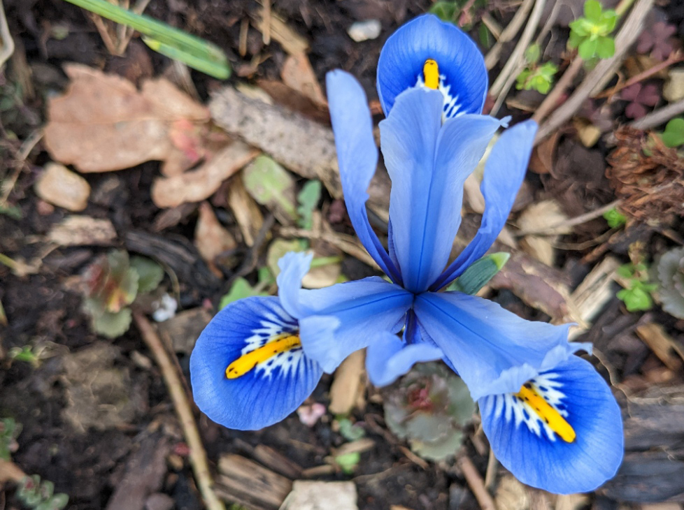 I have a little garden ritual in January to April. Whenever I walk out of the front door, I look round for the first ones. First snowdrop, first iris, first crocus, first daffodil. Sometimes I get a welcome surprise- an early anenome, or a perky camellia, for example.
