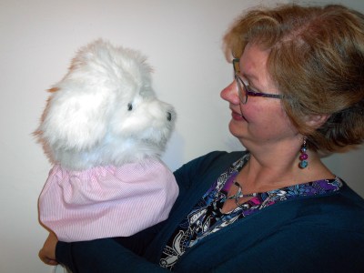 Hello Snuffles! This is Snuffles. He’s my pet dog and he’s … [Snuffles whispers]