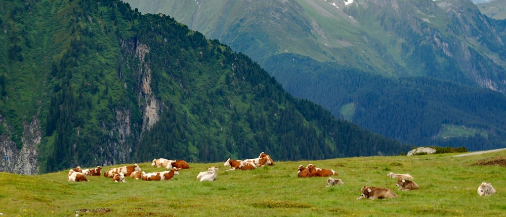 Austrian cows enjoying the high life near the Zillertal. The gentle clanking of cowbells is one of the charming sounds of the Alps; and the cows themselves seem to have a very phlegmatic approach to life. Perhaps I’ve only ever seen the tourist-trained ones!