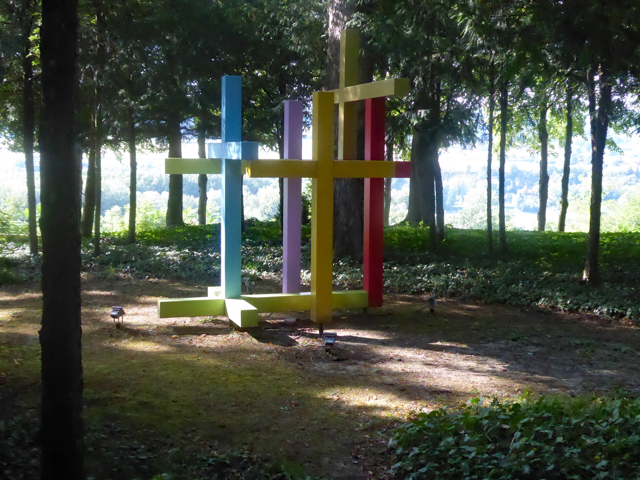 In the grounds of the Abbey the gardens are laid out with a network of paths, weaving through the trees and alongside the lawns. Exploring in the wooded area, we found this collection of crosses in a clearing. A small seating area nearby offered the chance to rest and reflect- it was lovely. The monks use these gardens in their meditations, and offer the facility to the hundreds of visitors who come to see the magnificent building every day.