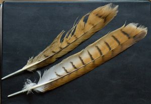 I imagine the magpie feathers I found came from a bird that ended up as someone’s dinner. The red kite feather didn’t. It came from a bird that is not flying as elegantly right now as it did last week, not turning as quickly, a bit hefty on the landing. But in a month or two, the flight feathers will have regrown, and it’ll be OK again.