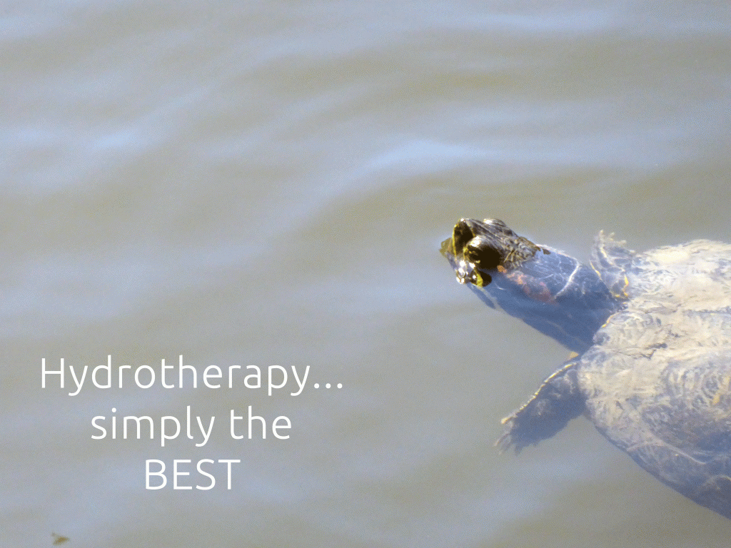 Put in the water, the terrapin becomes agile, elegant, and comfortable. Put me in the hydrotherapy pool, and a similar transformation occurs. I love hydrotherapy! Today was the first day back after a two month break: the water was deliciously warm and supportive, and the exercises (which are very painful done out of the water) have been relaxing my joints, easing my back, and allowing my muscles to work more normally.