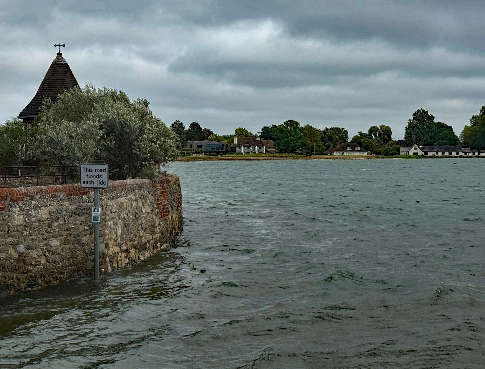 Since the sea was already lapping at the edge of the tarmac, common sense prevailed. Hey-ho for the car park, and farewell to a couple of quid. (The very reasonable price of peace of mind.)