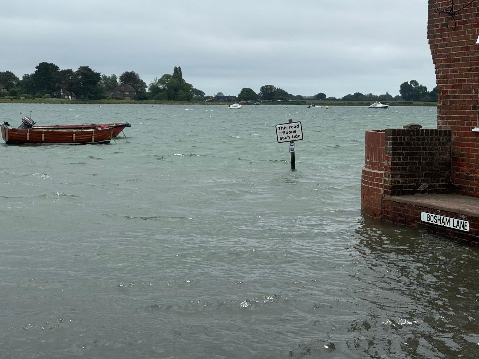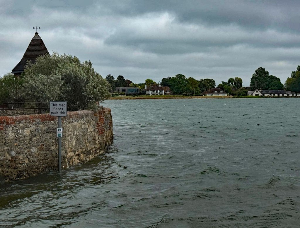 Chatting with the restaurant staff confirmed we had made the right decision. Apparently it’s not unusual for Bosham visitors to park close to the harbour, ignore or guess wrong about the tide, and see their vehicle float away across the harbour- often with an escort of swimming swans. If fortunate, they may be able to tow the car off the mudflats at the next low tide.