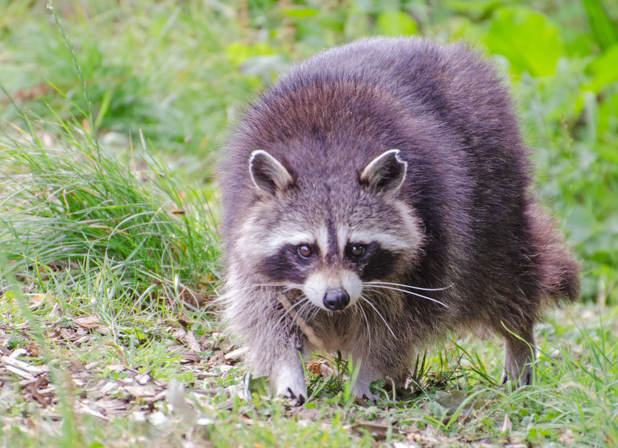 Extremely dextrous front paws help raccoons to thrive in many environments. They can dig, hold on well, and have often been seen washing food before eating. Since they will forage in urban bins and gardens, they are sometimes called “Trash Pandas.” They live up to the burglar’s mask they wear- and being mainly nocturnal, the noise they make raiding the bins will make the whole house jump!