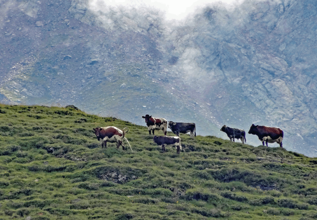Shame, though. I don’t think this wee-moo-cow-pic would be useful for a postcard or birthday card! What looked a good atmospheric Alpine cow pic is not suitable for polite company. Would Aunt Maud approve? My Mum would have given me “that” look.