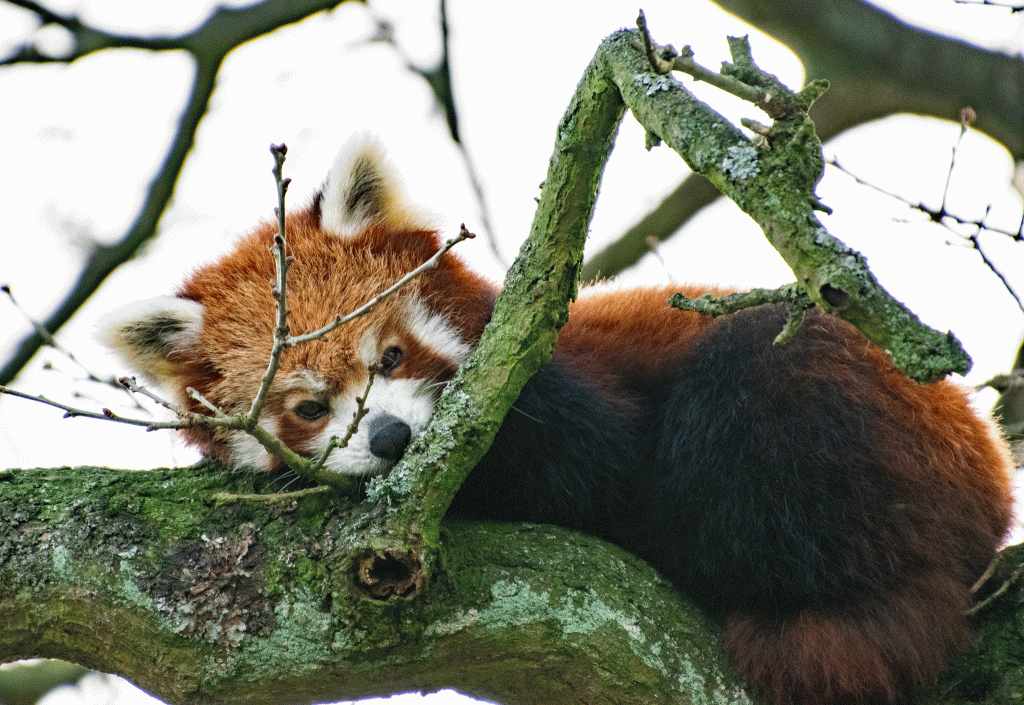 Red Pandas are fantastic climbers (I’m not) and spend hours of their day asleep in the most uncomfortable places up in their chosen tree.