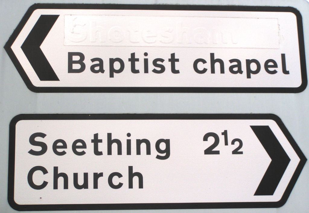 Once written or spoken, words can’t be taken back. Sometimes it’s funny, like the unfortunate road-sign giving directions to two churches… Is the lower one seething because it didn’t get top billing?