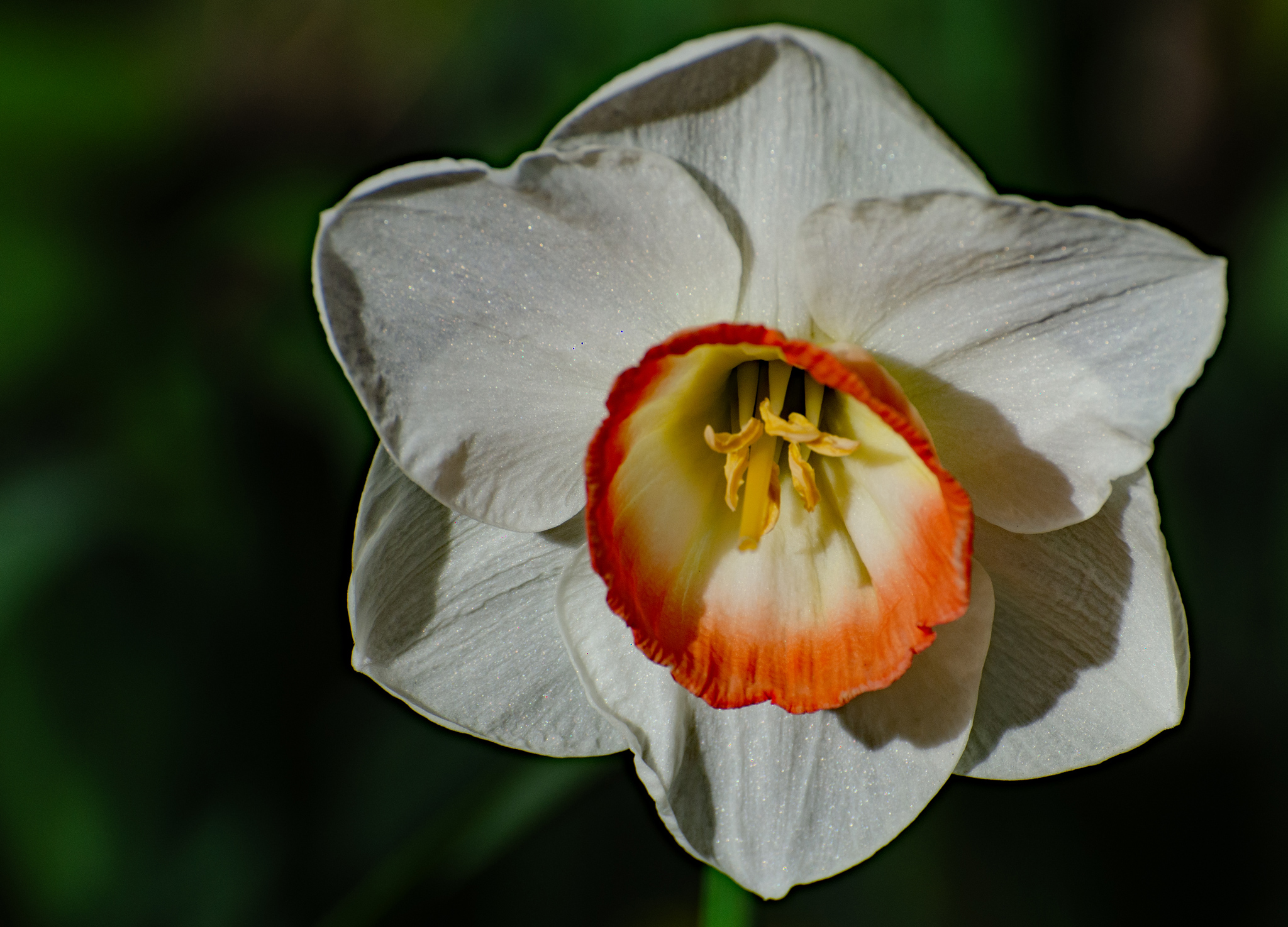 Shadows give shape and form to the picture: and if you look closely at the petals, the light brings out the tiny ridges and textures. There are even tiny white “sparkles” where light reflects off irregularities on the surface. And you thought they were mistakes! Go look at your own daffs, and you will see the same effect.