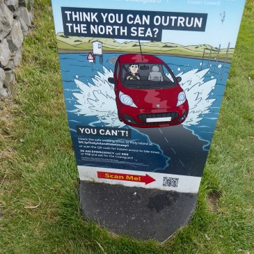 You can’t outrun the North Sea. Incoming tides are incredibly fast, and if you get to the causeway as the sea is reaching the road… STOP. GO BACK. Or wave goodbye to your prized car and enjoy several hours in the idiot box. … More Wise Up- Look, See, Pray