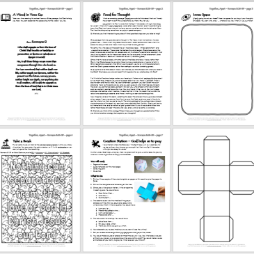 Romans 8 – More than Conquerors Welcome to Together Apart, a set of new intergenerational resources for all of us in God’s family. Ten jam-packed pages of great ideas that you can print off and use for free. Links for PDFs are below. Each week you’ll find Bible study ideas for all ways of learning … More Together Apart – Romans 8 – More than Conquerors